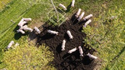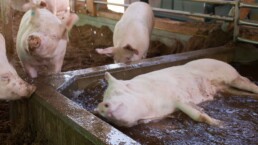 Hier können die Schweine wühlen, rennen, spielen, sich suhlen oder einfach dösen – kurz: das finden sie ein sehr lustiges Leben. Dieses Zusammenspiel aus Stall und Freiraum ermöglicht es ihnen, ihr natürliches Verhalten auszuleben – neugierig, aktiv und sozial. Licht, Luft, Platz und Spiel sind selbstverständlich. Diese Lebensqualität prägt nicht nur das Wohlbefinden der Schweine, sondern auch dessen der Menschen und die Qualität des Fleisches – feinfaserig, aromatisch und zart.